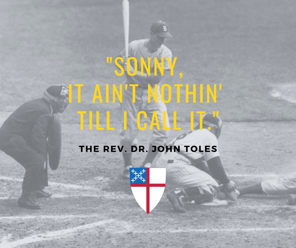 Remember how the Temple priests made the daily sacrifices and that they did it for the forgiveness of sins? But why did they have to make these same sacrifices day after day? St. Paul answers, “It is impossible for the blood of bulls and goats to take away sins.” (Hebrews 10:4) We couldn’t be fully redeemed by the blood of bulls and goats. We had to be redeemed by one who was without sin, but who would fully identify with us as flesh and blood human beings, and that was Christ Jesus: “When Christ had offered for all time a single sacrifice for sins, he sat down at the right hand of God… For by a single offering he has perfected for all time those who are being sanctified. (Hebrews 10:12, 14) To redeem us, he had to live as one of us: humbling himself, being born, falling down and skinning his knee, learning a trade, being baptized, fulfilling God’s purposes, betrayed, suffering, separation, dying. All of that, so that you could be with him where he is. All of that, so that we too could hear the words of our Father, not only spoken to and of Jesus, but also spoke to and of us: “This is my Son, the Beloved, with whom I am well pleased.” What did Klem the umpire say? “Sonny, it ain’t nothin’ till I call it.” And through Christ’s actions, including his baptism, God has called it. He has called us: His sons and daughters, with whom he is well pleased. “See what kind of love the Father has given to us, that we should be called children of God; and so we are… Beloved, we are God’s children now.” (1 John 3:1a, 2)