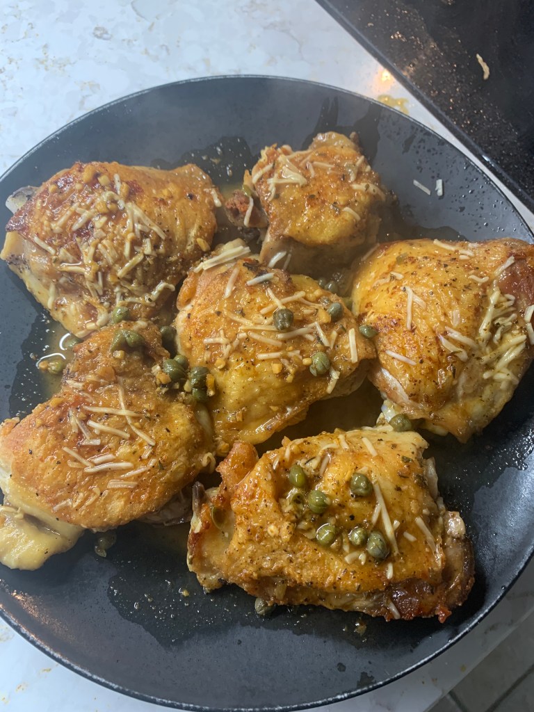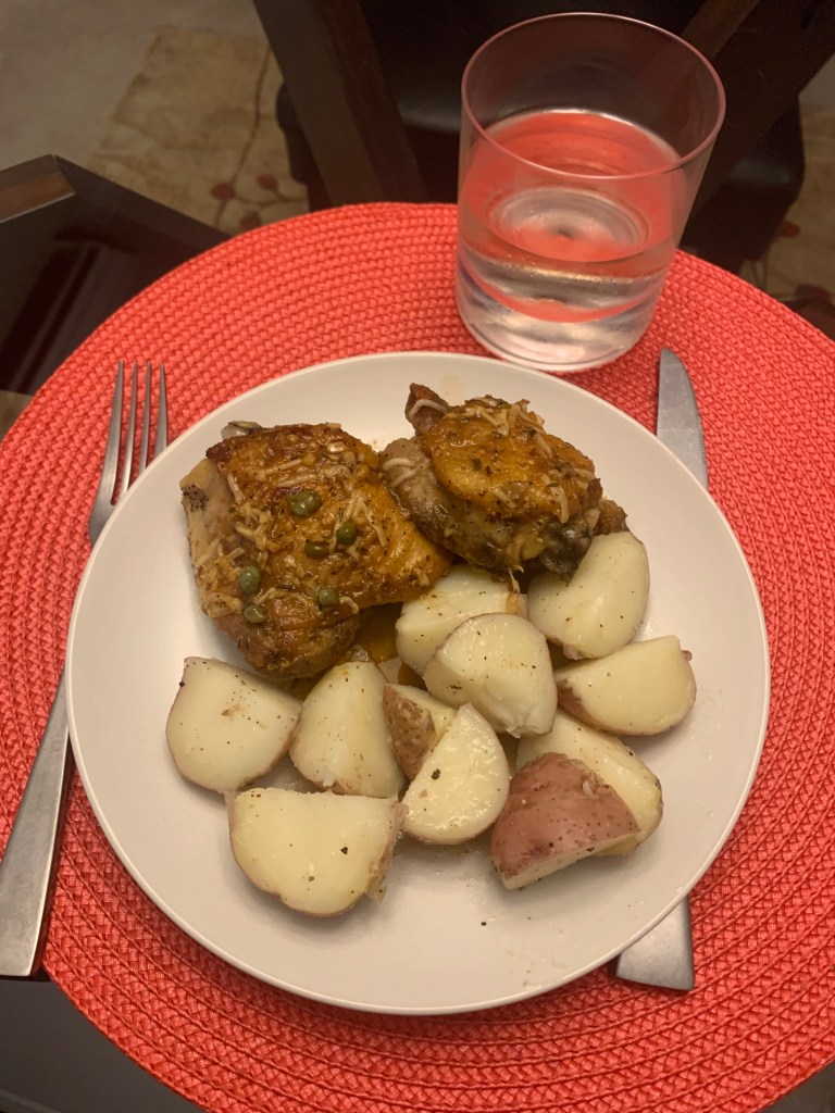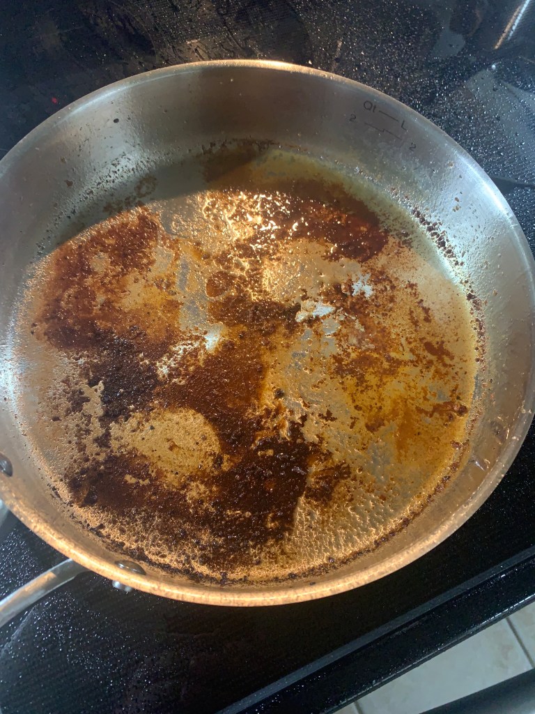 Just say, Yum. Pan came out perfectly clean with a little soap and water. Three tricks: preheat the pan prior to putting anything (no oil, butter… nothin’) in it, let what you’re cooking sit a bit before messing with it (didn’t even look at the chicken for five minutes and could have gone longer), and deglaze all the tasty bits when you’re done with the cooking. There are all sorts of good videos on YouTube to help you along.