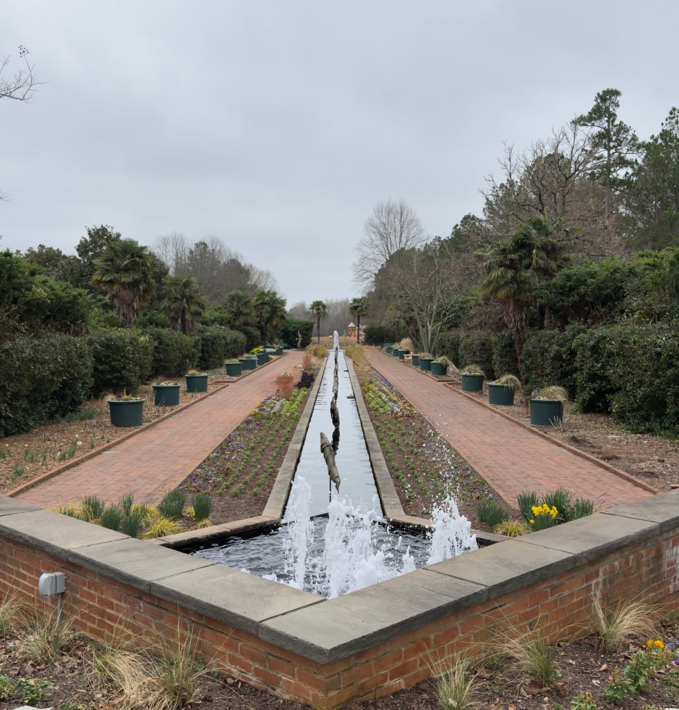 We then made our way to the Daniel Stowe (textile magnate) Botanical Garden, consisting of 380 acres of trails, gardens, fountains, shops, and the William Conservatory, housing a collection of orchids and tropical plants.