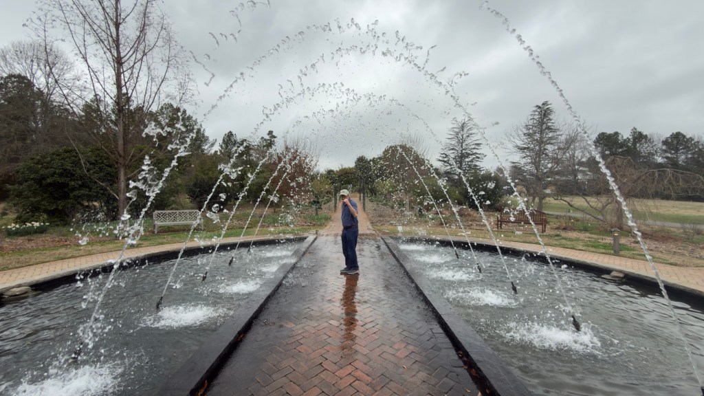 There was a fun fountain where we took time for a selfie and a mad dash. I got rather wet but it was refreshing.