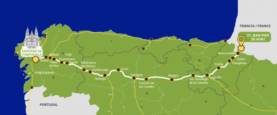 On this feast of St. James the Apostle, I am delighted to launch this new item on the blog: In 2020 my cousin, Janie, and I plan to walk the Camino de Santiago, Camino Francés (The French Way), which begins in St. Jean Pied de Port, France, is roughly 500 miles across northern Spain, and leads to the Cathedral of Santiago de Compostela. In order to accomplish this pilgrimage we’re going to need to get started now. This page is to document the journey, from training (I weigh in at 243lbs and that just isn’t going to work… need to drop at least 50lbs) to shoes, from plane tickets to side trips, from a compostela to albergues, and hopefully learn a bit of Spanish in the process. Looking forward to taking you along the way.