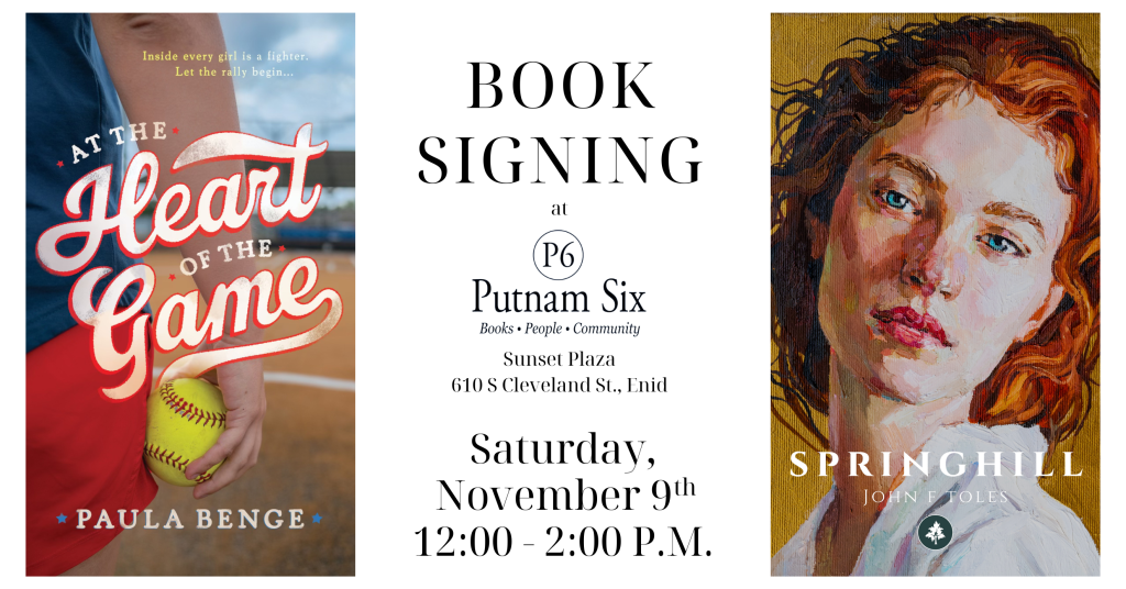 If you can’t make it Friday, there will also be a book signing at Putnam Six Bookstore on Saturday, November 9th. Friend and fellow author Paula Benge will also be there with copies of her new book.