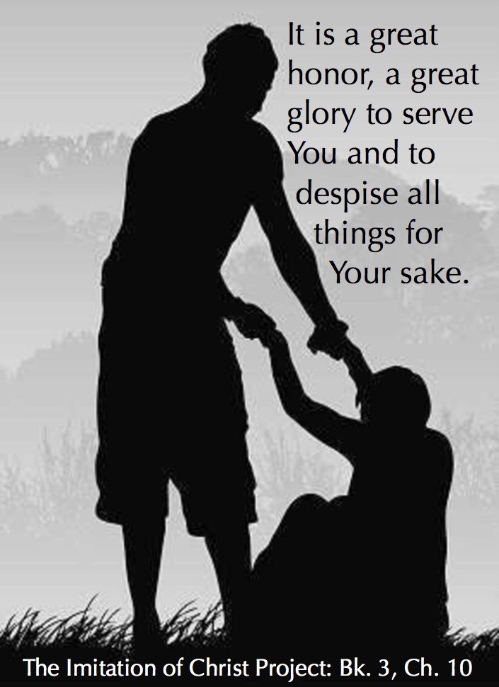It is a great honor, a great glory to serve You and to despise all things for Your sake. They who give themselves gladly to Your most holy service will possess great grace. They who cast aside all carnal delights for Your love will find the most sweet consolation of the Holy Ghost. They who enter upon the narrow way for Your name and cast aside all worldly care will attain great freedom of mind.