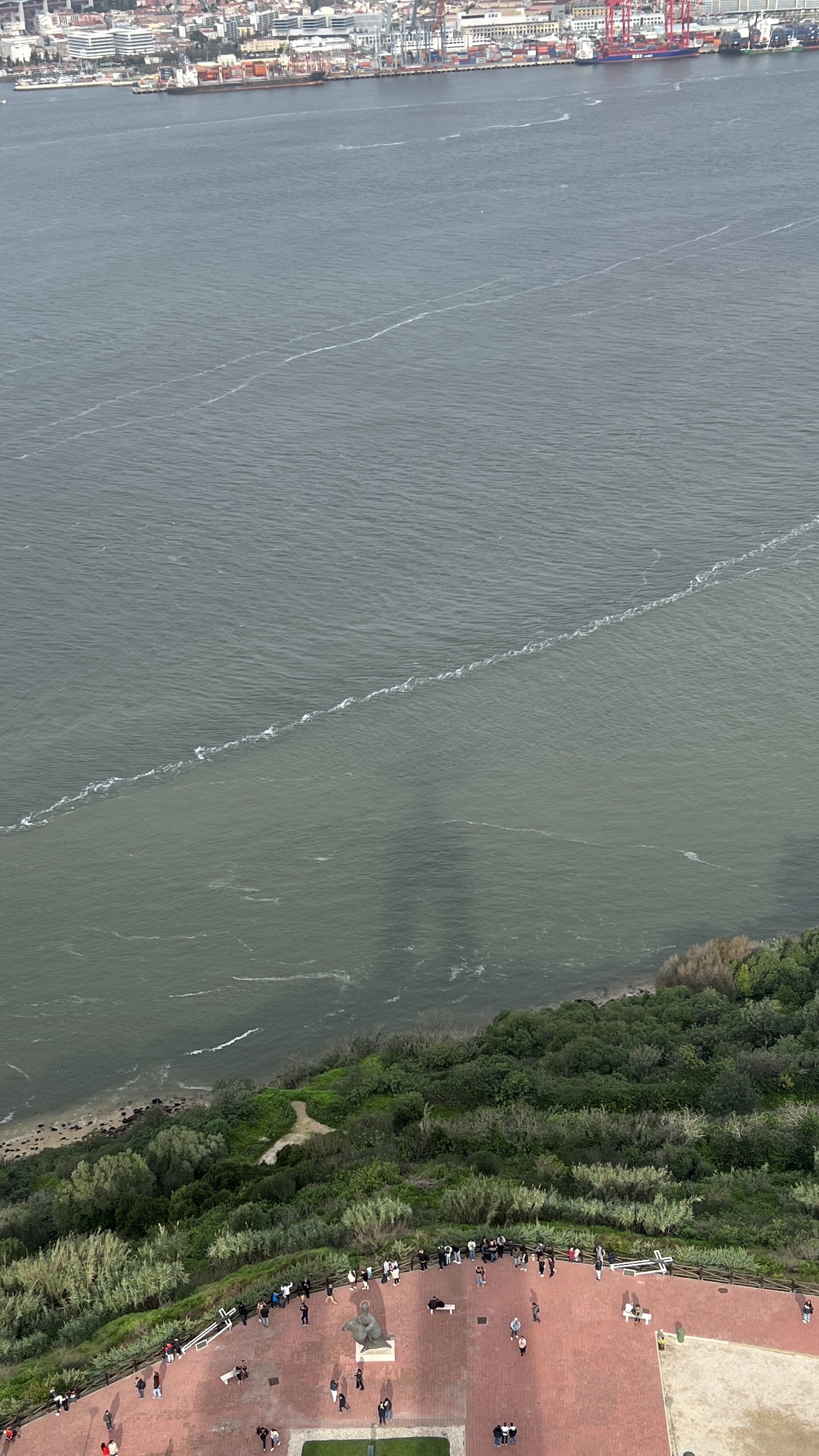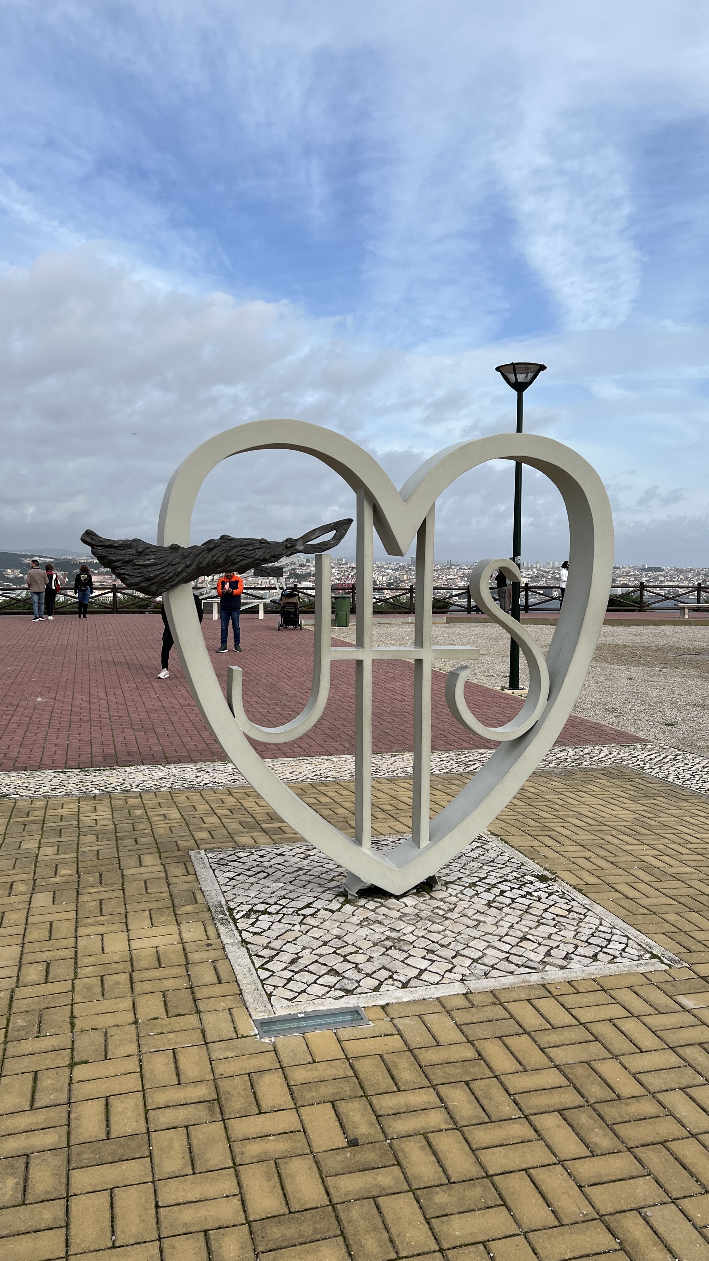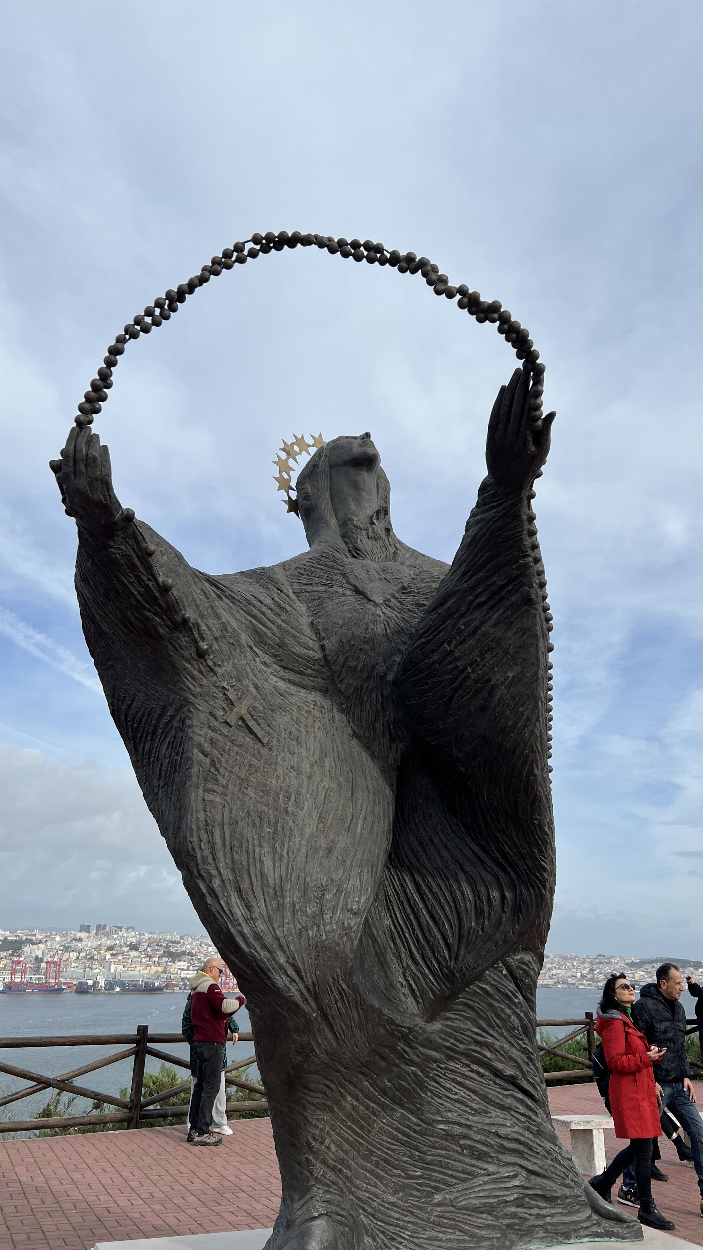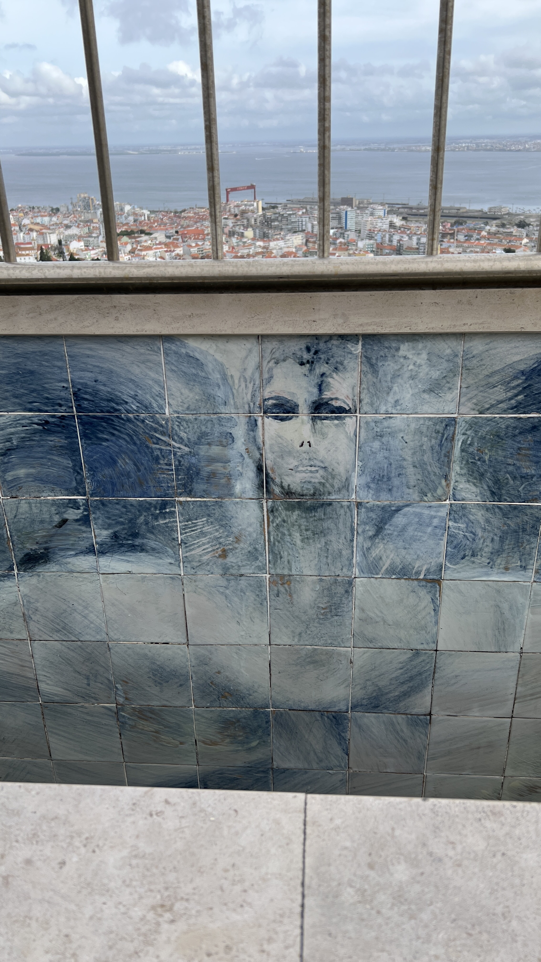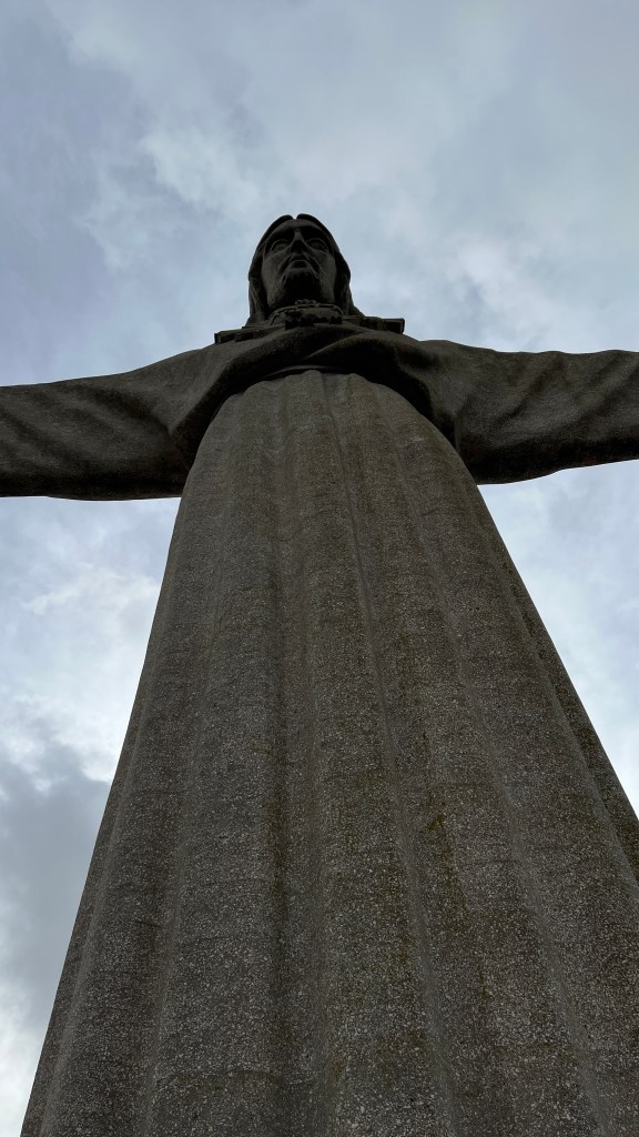 I spent an hour wandering around the grounds, looking up, and seeing the various other works of art, then went for a cafรฉ and a pastel de nataโa small custard pieโbefore heading to the top.
