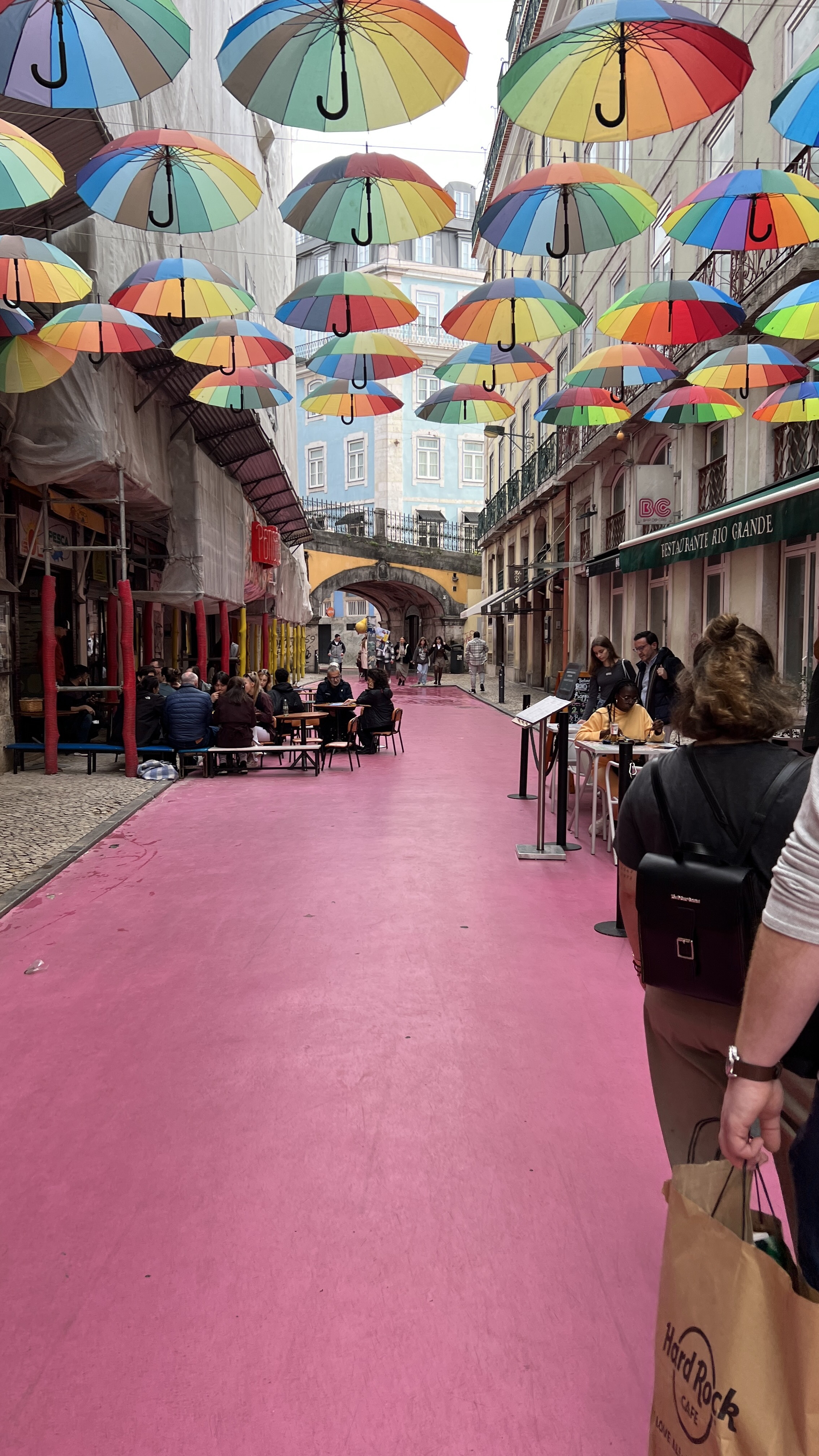 After another taxi and ferry ride, I was back on the north side of the river. A bit of research last night told me that if I walked a few blocks north, I would come to the Rua Nova do Carvalho (The Pink Street!) Voila! Found it. (This is a complete 180ยฐ turn from the Cristo Rei, as this area of town was formally the red light district.) The street will definitely put a smile on your face, as will all the silly, wannabe social influencers (?) posing for pictures.