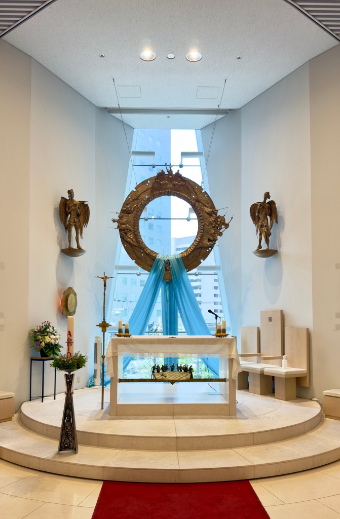 This church was planned by 5 churches in umeda area, Osaka. It is a four-story complex facility, produces an impressive space with the fusion of tradition and modernity. In other stories of the building, there are the satellite campus of Sophia University, the bookstore of Sanpaolo, which deals with the books of Catholic and so on.