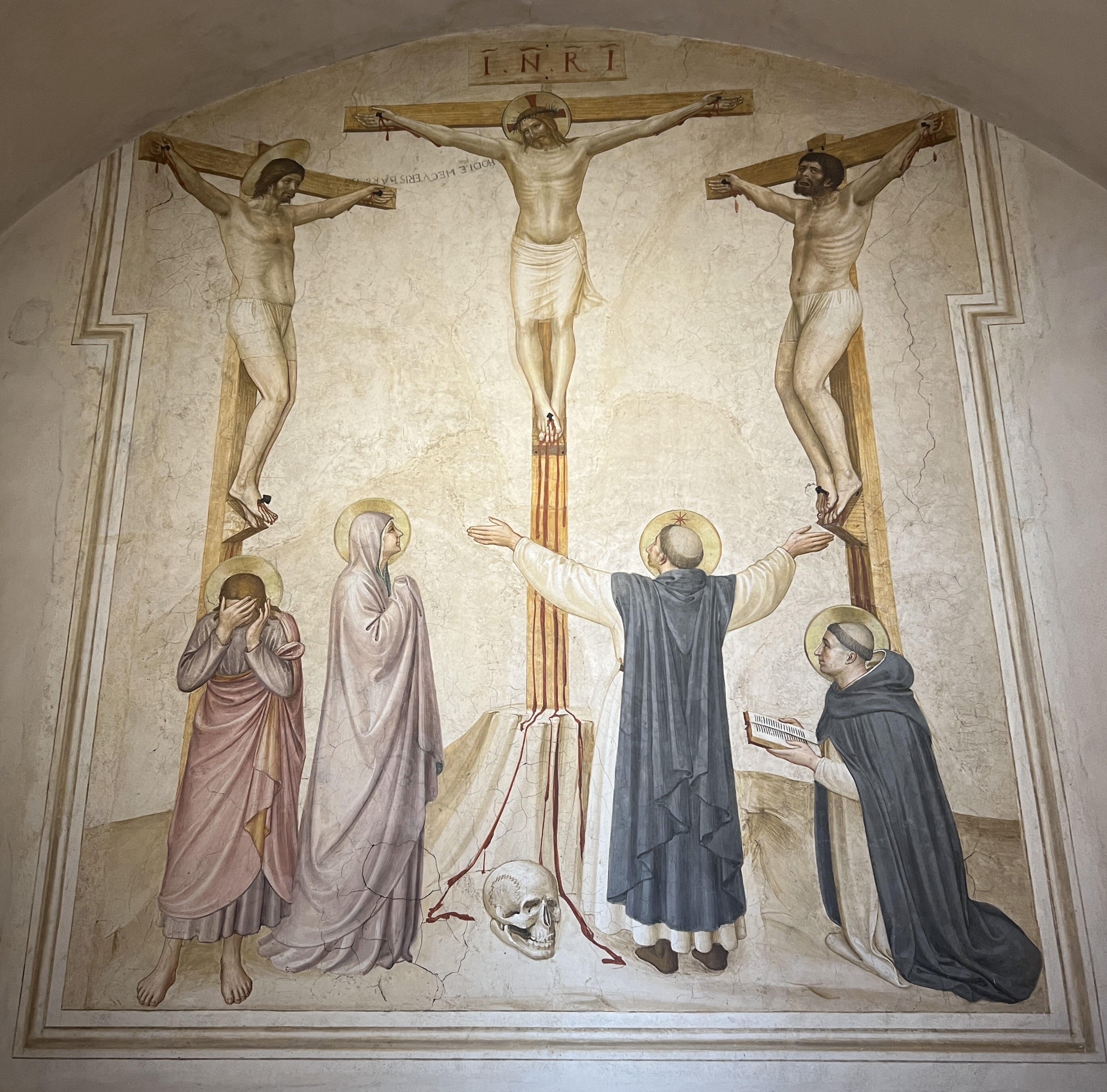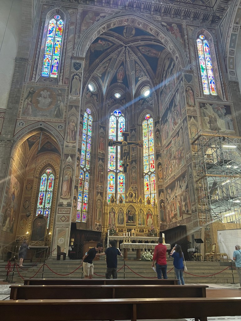 After a quick breakfast in we headed out for the Basilica di San Marco. The original Benedictine monastery was established in the 13th century and was later occupied by the Dominicans who then refurbished and expanded the facility with the support of the Medici family. The architecture is phenomenal but the reason you are there is for the frescoes that grace the walls, which were painted by the great Dominican artist, Fra Angelico. Every monk’s cell has a scene from the life of Christ along with many of the walls along the hallways and cloister.