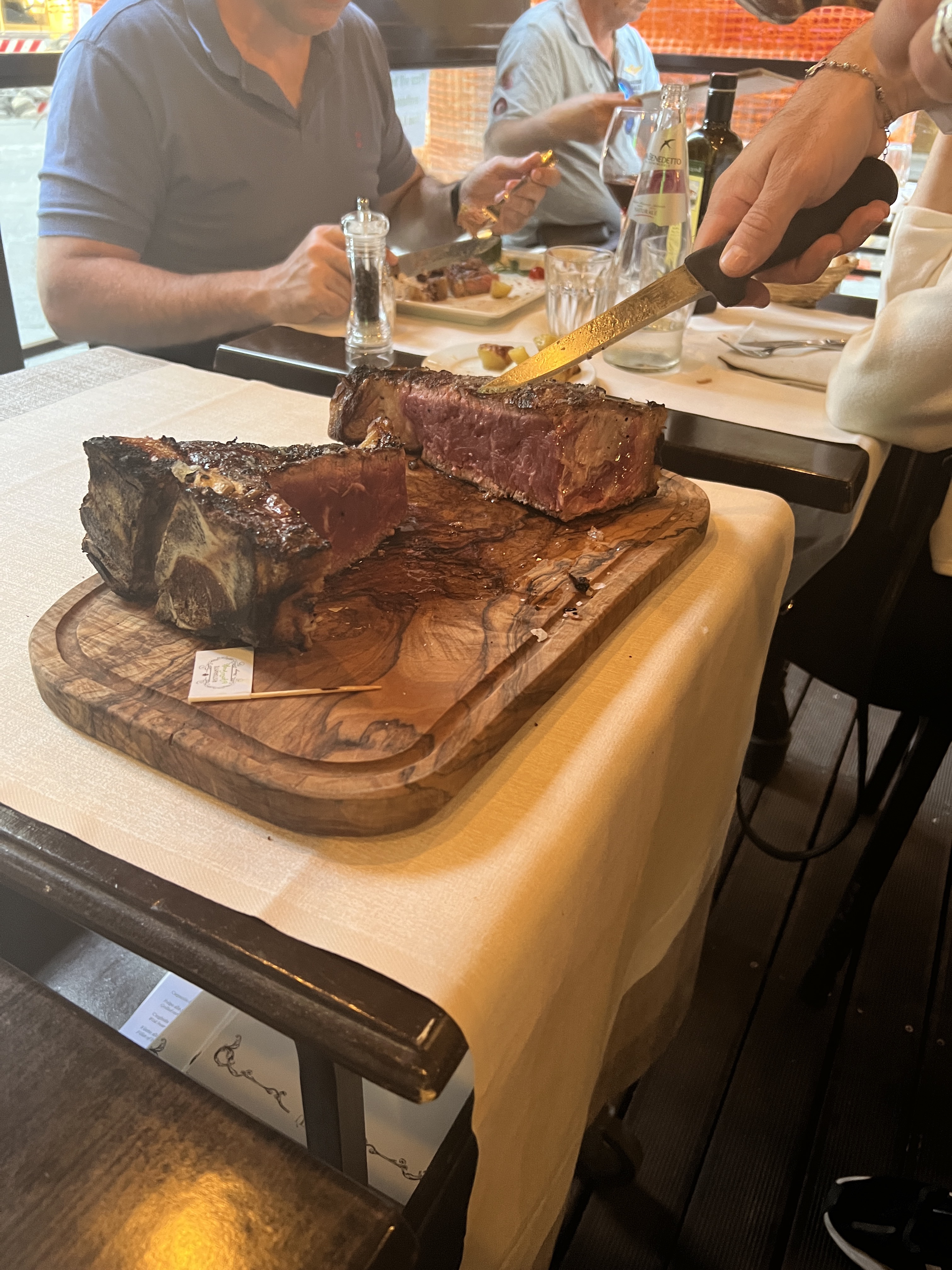 We made out way back to the VRBO by mid-afternoon. The heat today was wearing on us all, which allowed us time to rest and freshen up before heading out to dinner where we enjoyed some of the best Florence has to offer and what they are famous for: red meat/steak. You tell them what you want, but you do not tell them how to prepare it (rare/medium/etc). You order and they deliver. Trust me: they are the experts and you will not be disappointed.