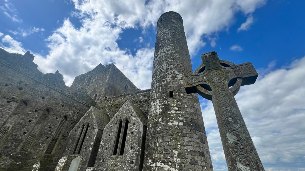 Legend has it that Saint Patrick vanquished the devil from a cave. The devil became so infuriated that he took a bite out of the mountain. When he did, he broke a tooth. Being in pain, he spat out the mountain and his tooth. The site of the Rock of Cashel (about 22 miles south of Devil’s Bit Mountain) is the bit of the mountain and the devil’s broken tooth that was spat out. Originally the Rock of Cashel was a castle, but was later donated to the church by someone seeking favor. From there, it was transformed into a great community. It now lays in ruin, but you get an idea of what it once was.