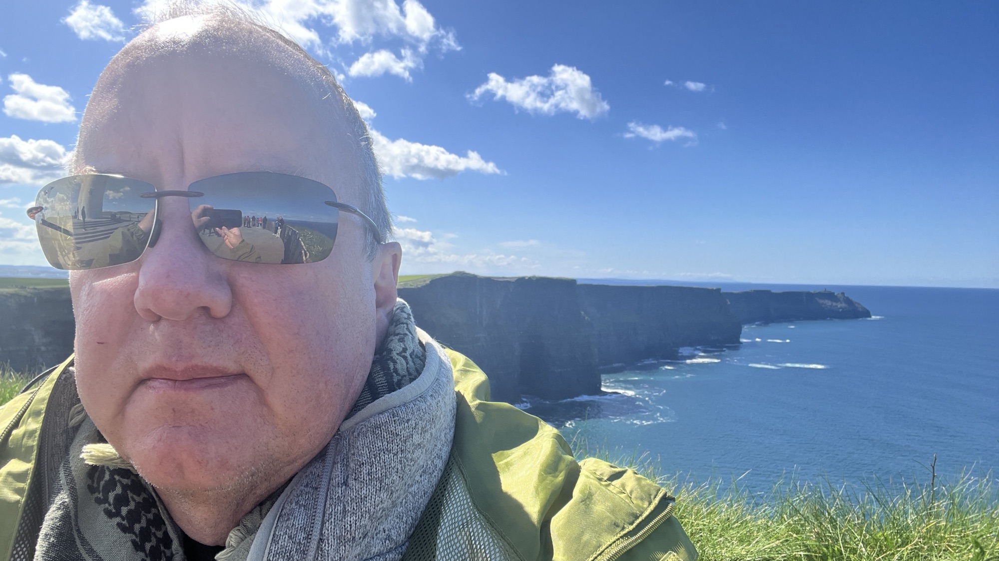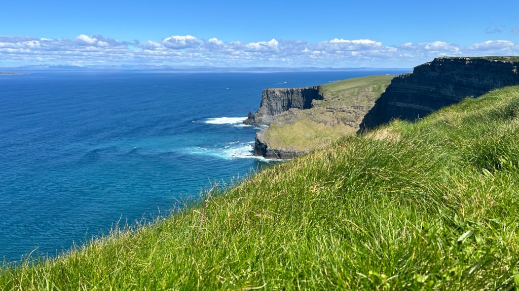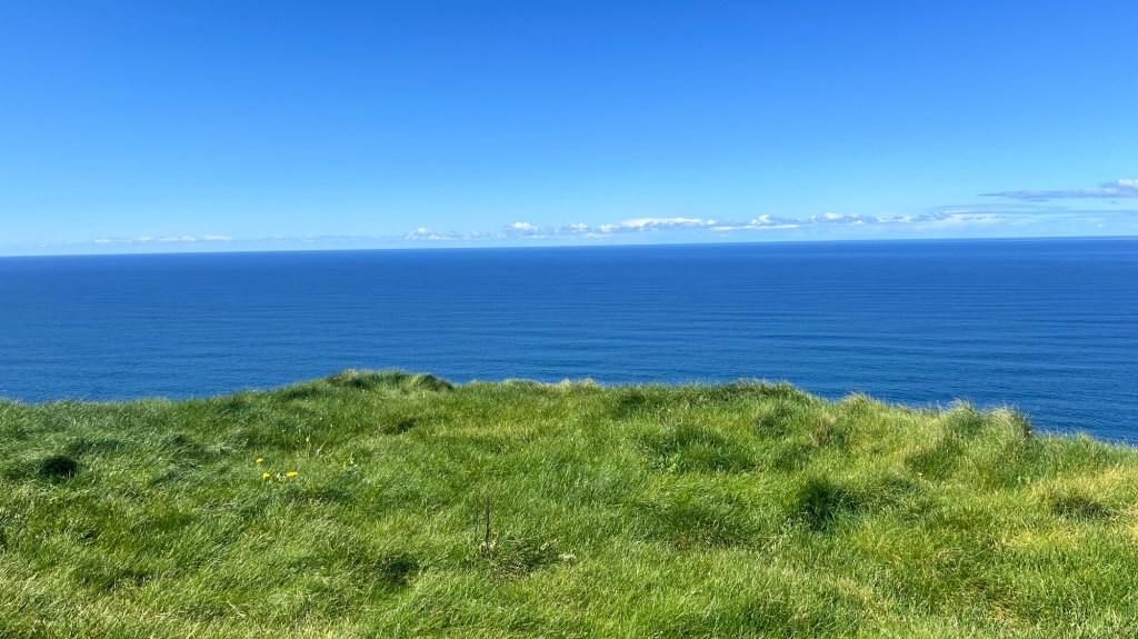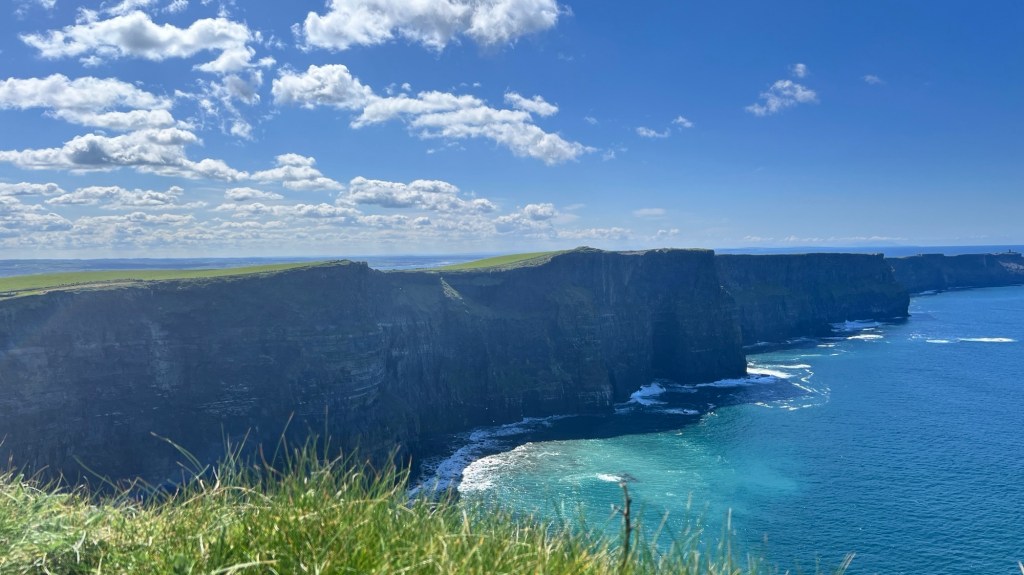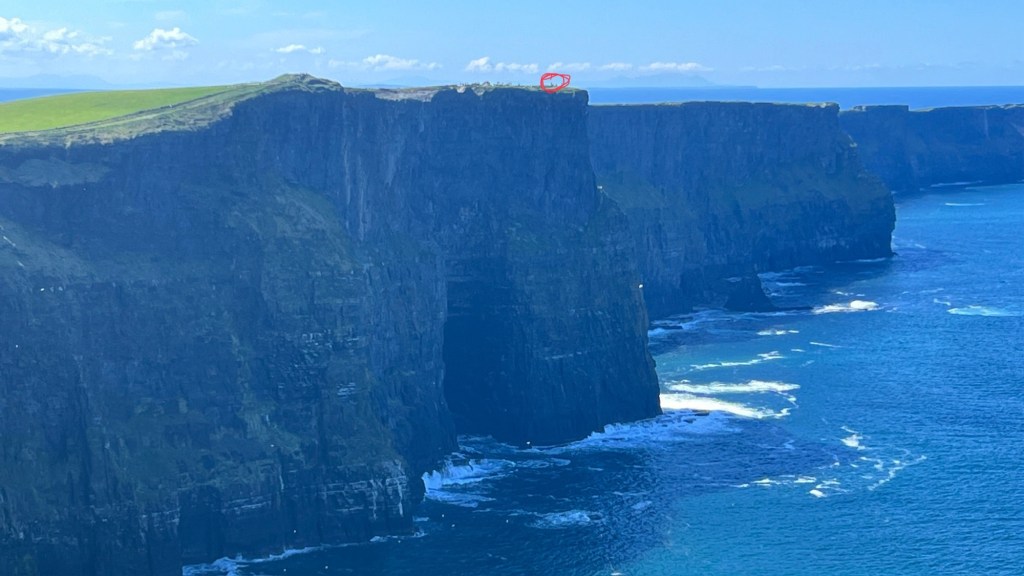 A two hour drive today out to the Cliffs of Moher, which are on the edge of the Burren. A beautiful scene looking up and down the coast and out over the Atlantic. There at mid-day, so the sun wasn’t quite on the cliffs at the time.