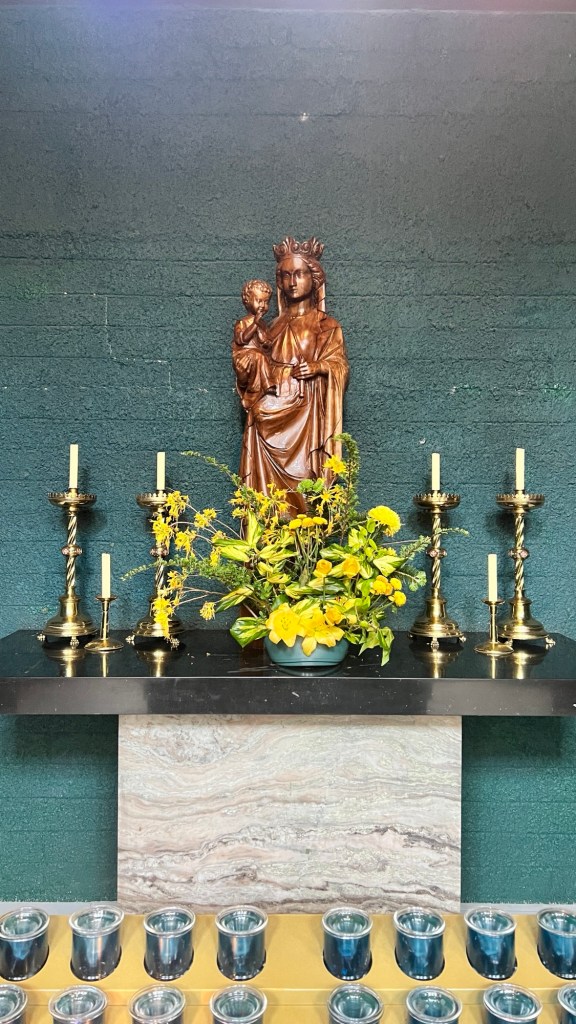 I intentionally arrived an hour early so that I could pray my Rosary. I did not expect there to be a statue of Mary, but…