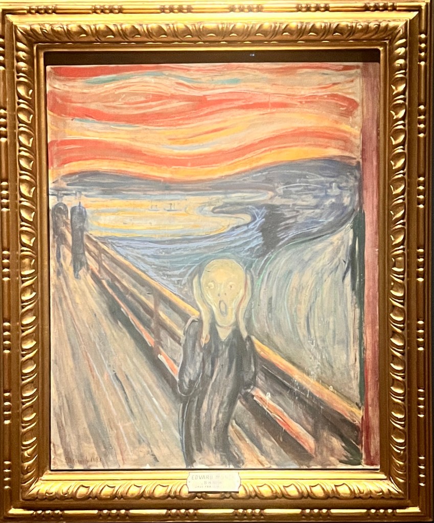 Try not to be too scared by what you see next. There are many amazing pieces of art in the museum, but this is perhaps the most famous. The Scream by Edvard Munch (yes, he is a Norwegian.) It was the only painting that I saw where a security guard was posted beside it. My guess is that the recent acts of vandalism against famous pieces of art has brought this on.