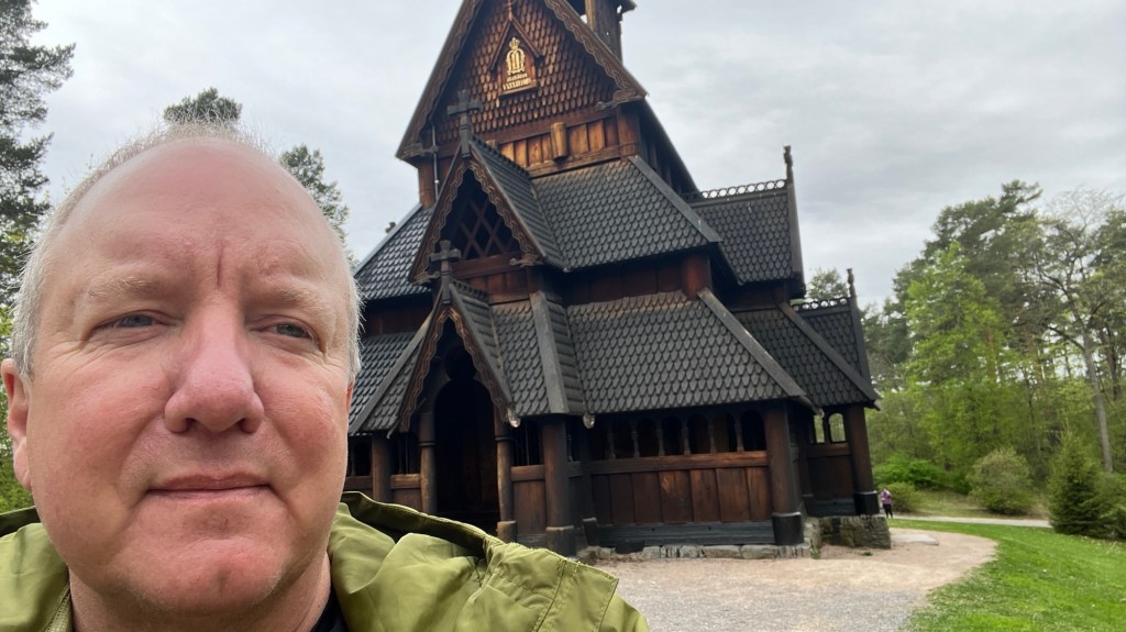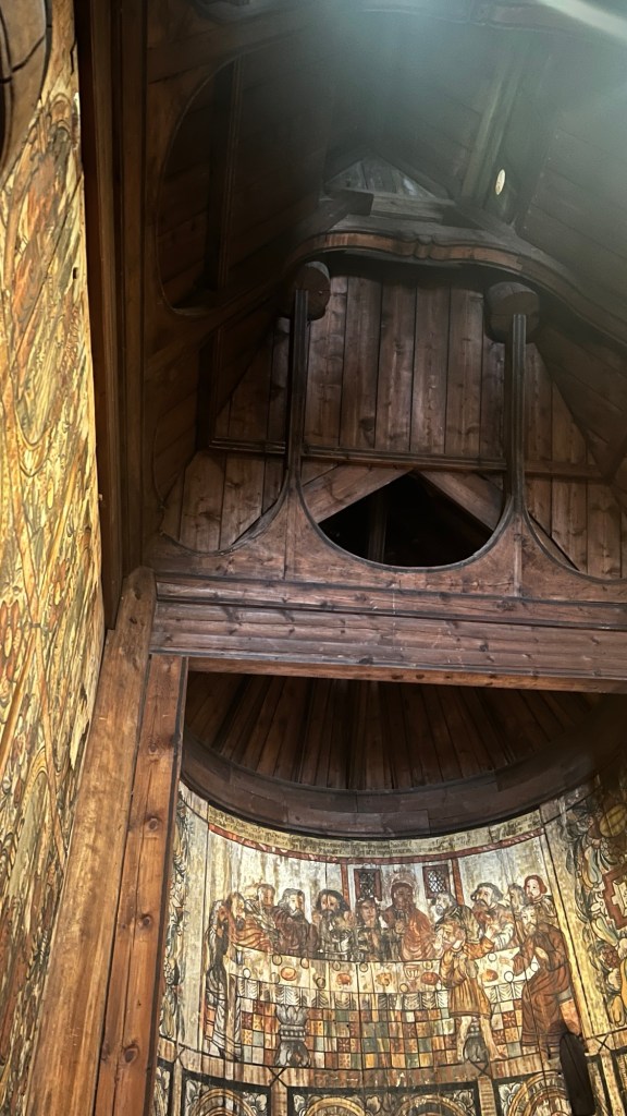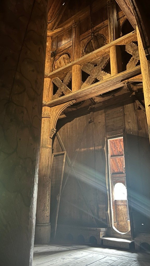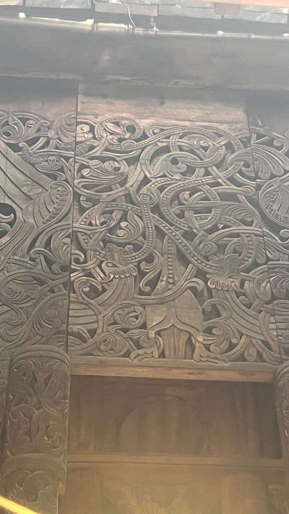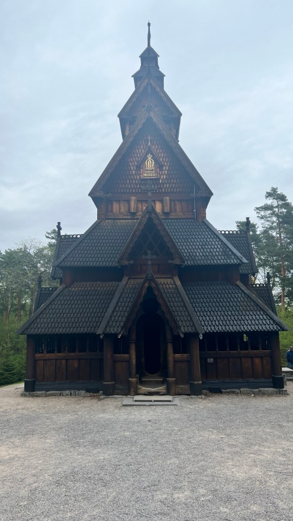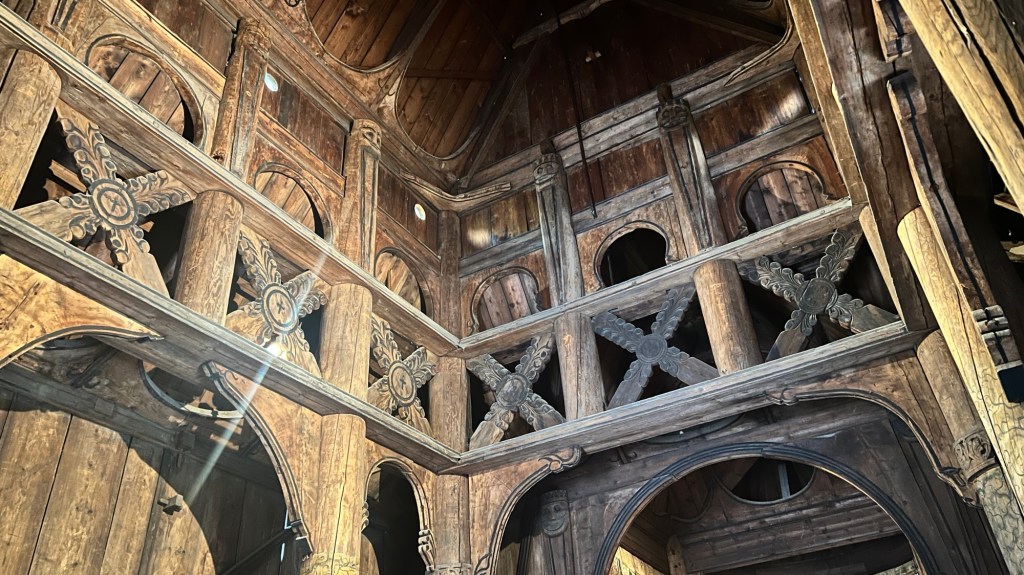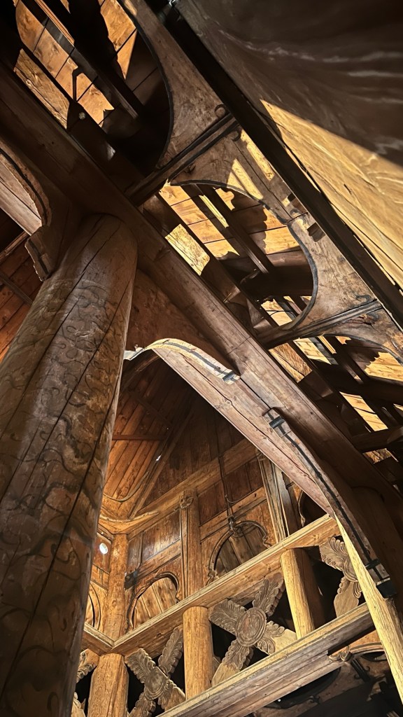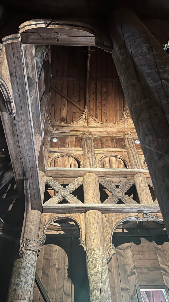 There were a number of reasons that I came to Norway, but this is in the top two. I wanted to see this church. It was actually moved from another location, but it is an excellent example. A wooden church that has survived for 900 years. Imagine. One of the reasons that it has survived has to do with the way that the wood was “cured.”
