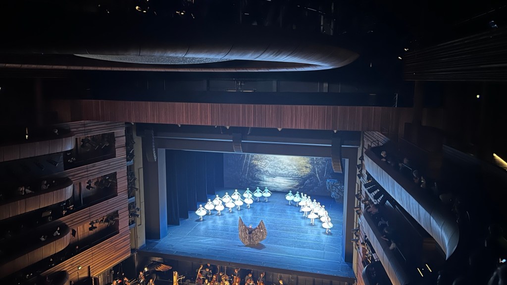 The main show was Swan Lake, Act 2 (a new production). My seat was on the very back row, but still enjoyable.
