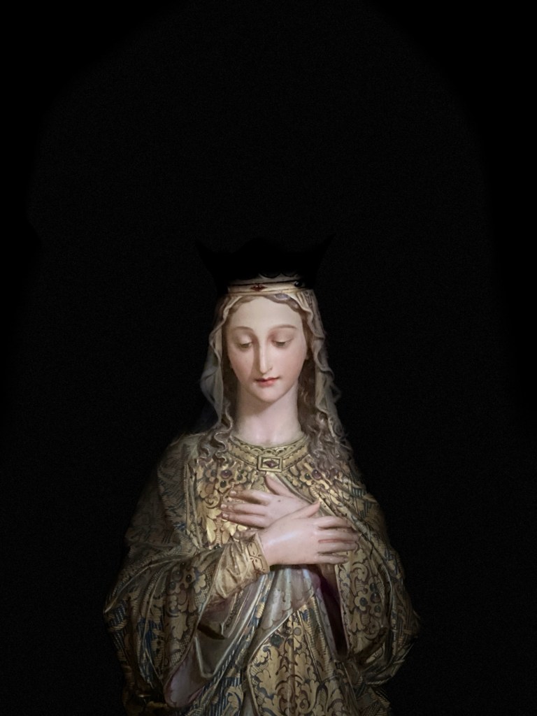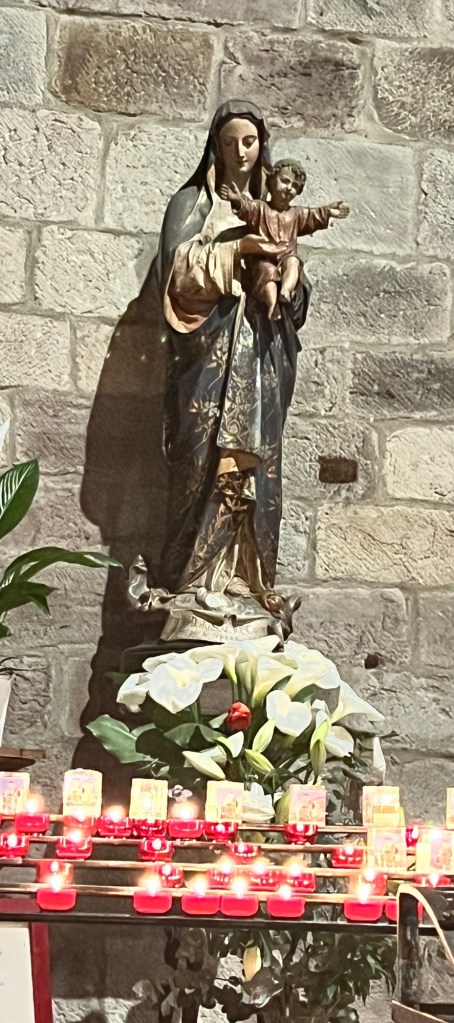 Soon afterward, I came to the church where I said my rosary for today. It was so nice and cool inside. Probably no more than about 40 people could have fit. I’m not quite sure how I got this shot but I thought it came out beautiful.