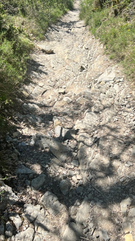 I made it to the top of the most recent hill. There are plenty of them here. As I started my way down I came across all these purple flowers. It struck me that Santiago is still over 450 miles away and that it’s OK to stop and smell the flowers for just a moment. It will not delay my arrival at all.