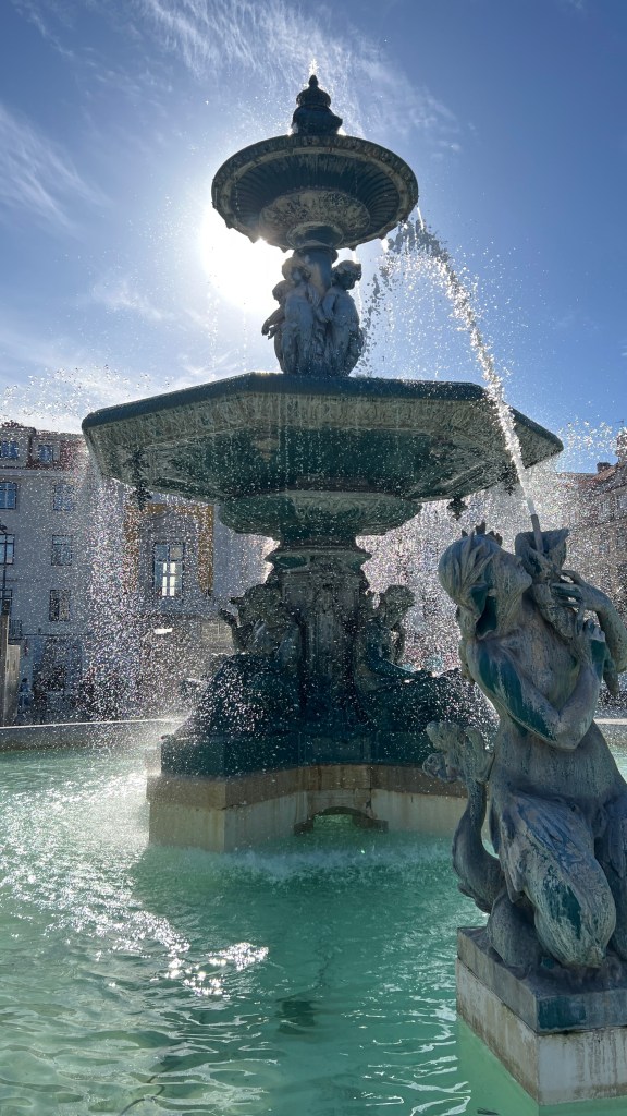 Afterward, I stopped for a while in Rossio Square, and after the influencers moved aside to let the rest of us in, I was able to capture a few images of the fountain.