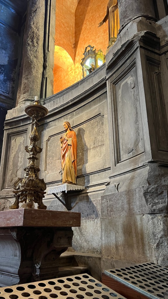 None of the churches are brightly lit, but this was by far the darkest, between fewer windows and electrical lights.
