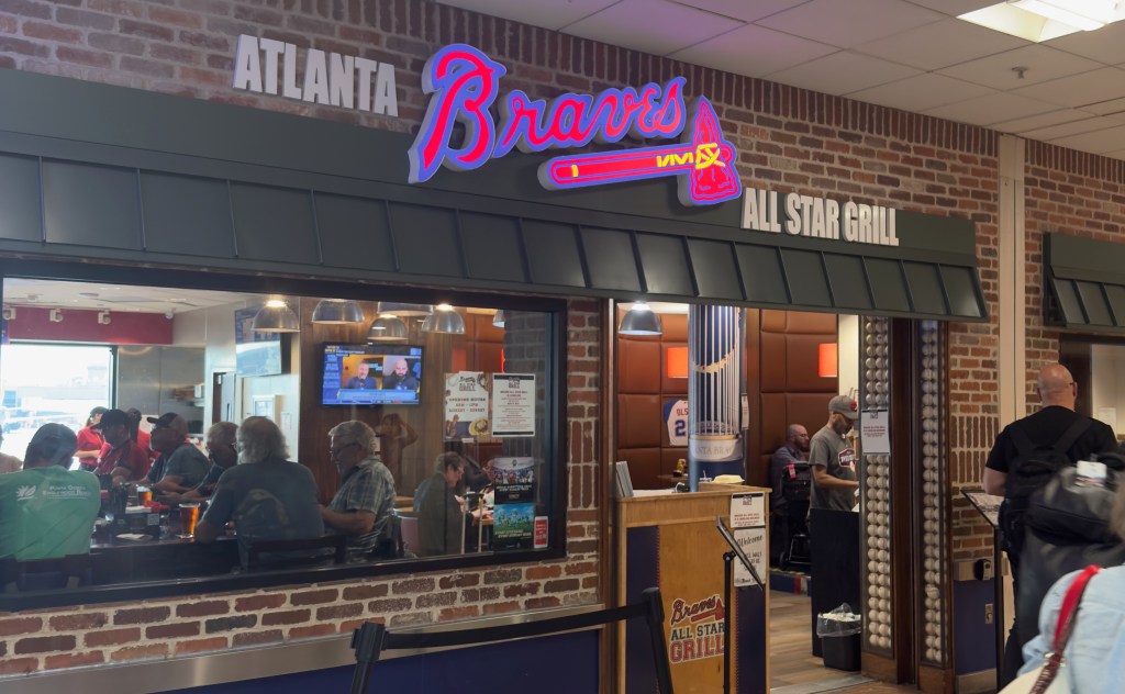 Spent an hour and a few dollars in the Braves Bar during the layover before taking off for RDU–The Raleigh/Durham airport.